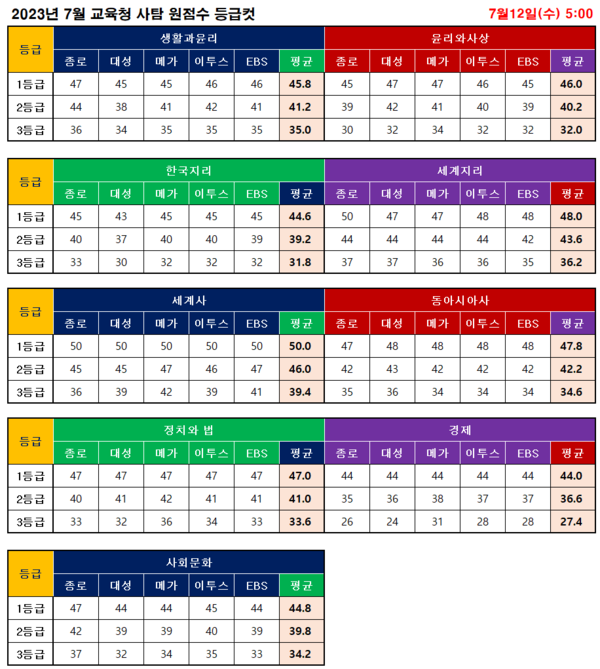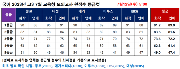 2023년 7월 모의고사 등급컷 & 수험생 체감 난이도 본문